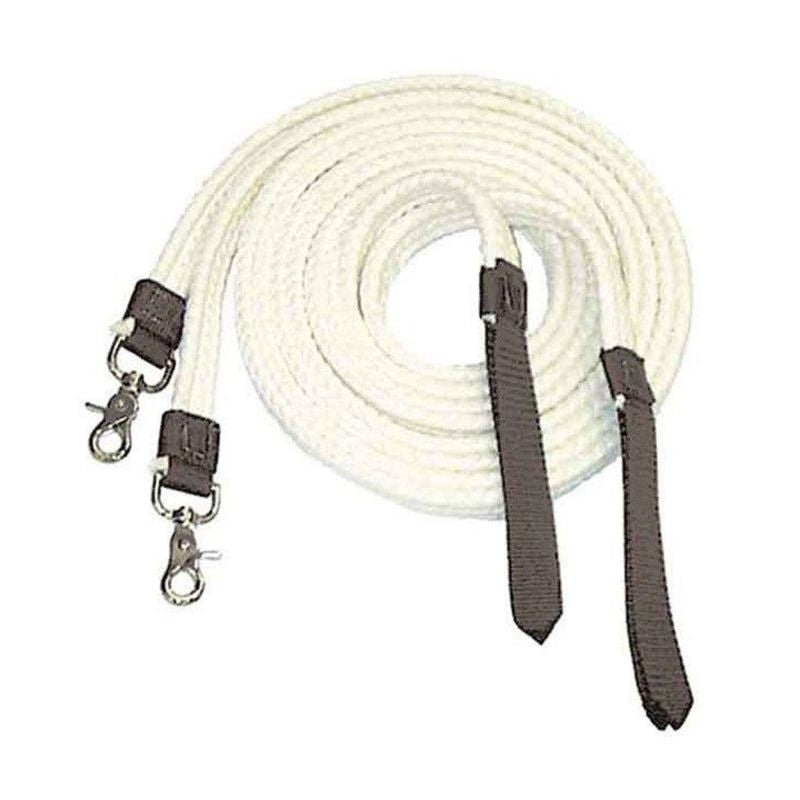 The Colorado Saddlery Flat Braided Cotton Reins are sturdy working reins that are easy on the hand and long enough to do what reins have to do. A great pair of reins! Made in USA. 7 1/2' x 1".Size:1 x 7.5