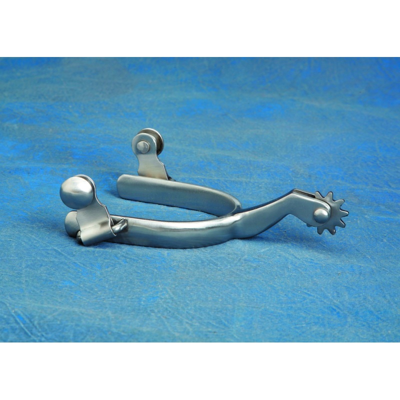 The Colorado Saddlery Lady Brushed Steel Roper Spurs are beautiful brushed steel, ladies roping spurs with a gooseneck shank, 7/8″ 10 point rowels and swinging buttons. Made to fit a boot comfortably and to ride right.