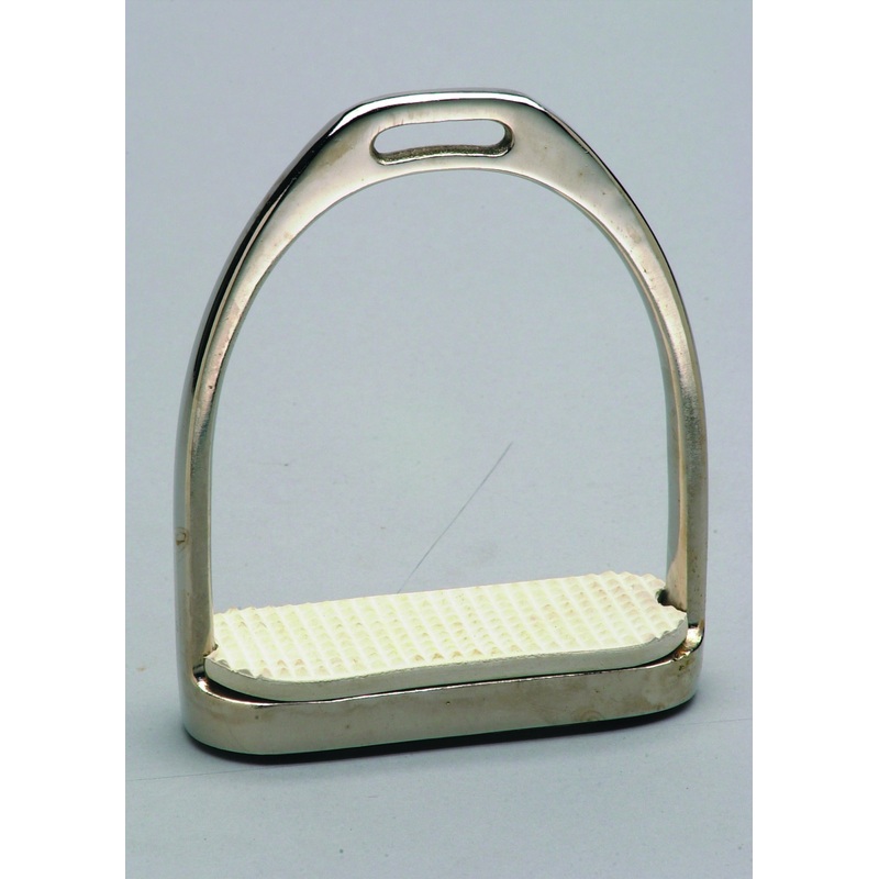 The Colorado Saddlery Stainless Steel English Stirrups are designed with a bright finish. Complete with treads. 1 1/4″ neck, 2″ tread, 4 1/2″ wide.