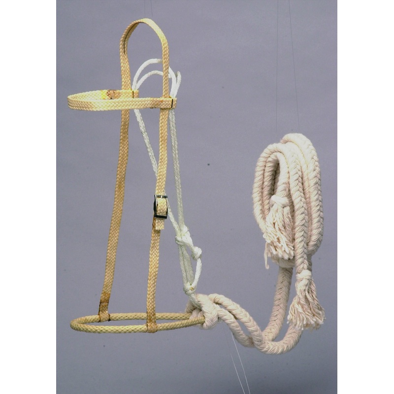 The Colorado Saddlery Waxed Rope Hackamore With Cotton Reins is designed with a 5/9" , 5/8" headstall, 5/16" nylon cord fiadore and a 15' soft cotton rein. An excellent hackamore for starting colts.