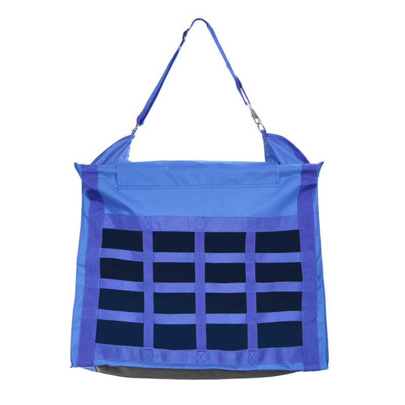 This nylon hay bag features a reinforced nylon web slow feed front. The extra-large size and structured top of this bag makes it easier to fill than other styles. Also designed with a Quick Grip top flap to keep horses from cheating from the top. Complete with adjustable nylon strap with clip for easy hanging and a mesh bottom to allow hay dust to fall out