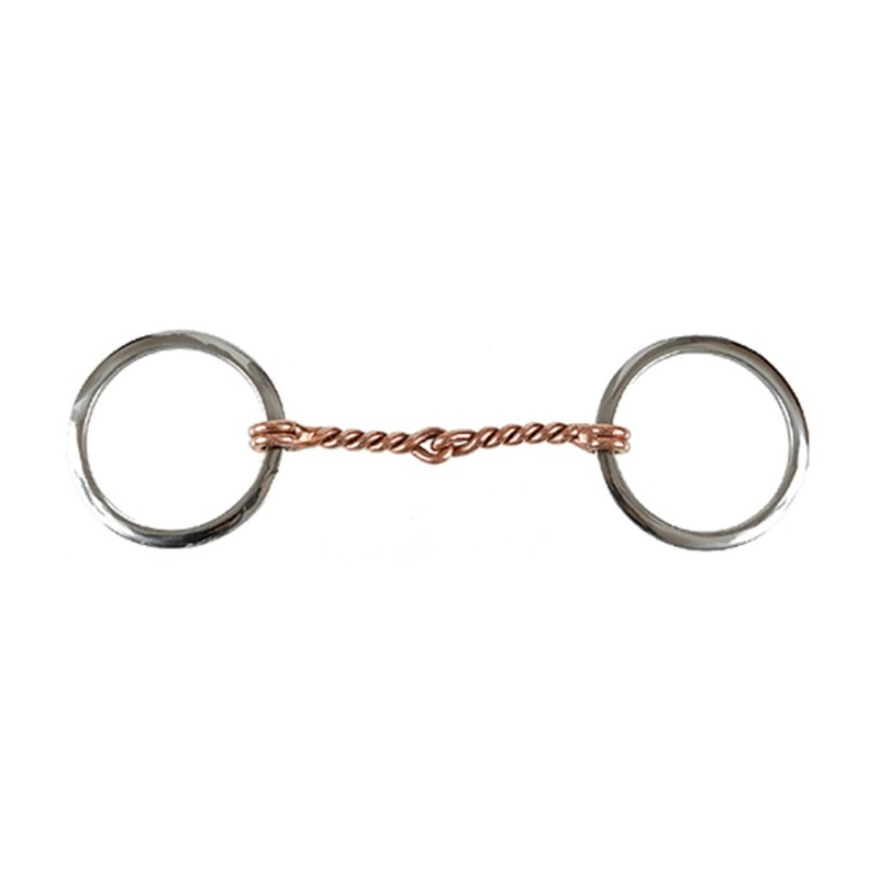 Stainless steel Copper Twisted Wire Ring Snaffle Bit has 3″ 75mm flat rings and a 5″ jointed twisted copper wire mouth with thickness of 10mm.