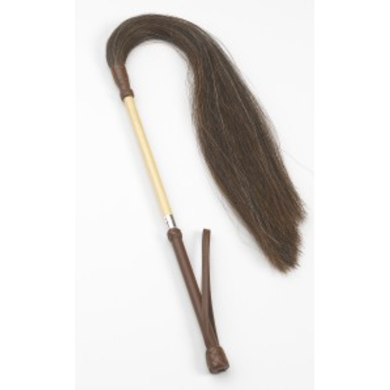 Genuine horse hair with a leather wrap handle and bamboo shaft. Made in England. County of England offers the finest collection of traditionally made whips, crops and bats that provide ideal balance and durability. Poppers stay secure, and handles and trim details are made to last.