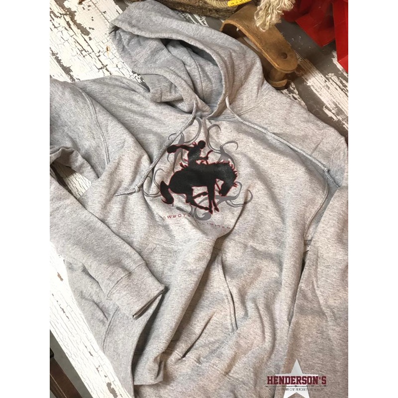 A heather grey hoodie for a with a bucking bronc. (Gildan hoodie)**All Monitorsdisplay color differently!Proposition 65 Warning for California Residents.