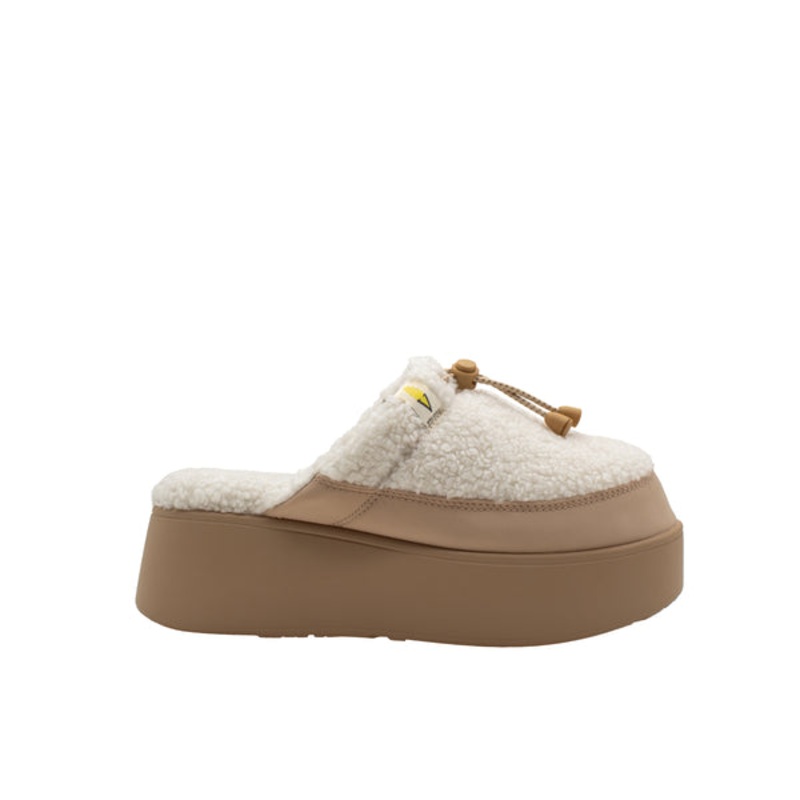 Indulge in cozy comfort with Volatile's clog slipper Corporal, featuring a plush sherpa upper and convenient elastic drawstring with toggle for a snug fit, perfect for lounging in warmth and style.2.25 platform wedgeClog slipper upperElastic togglePadded i