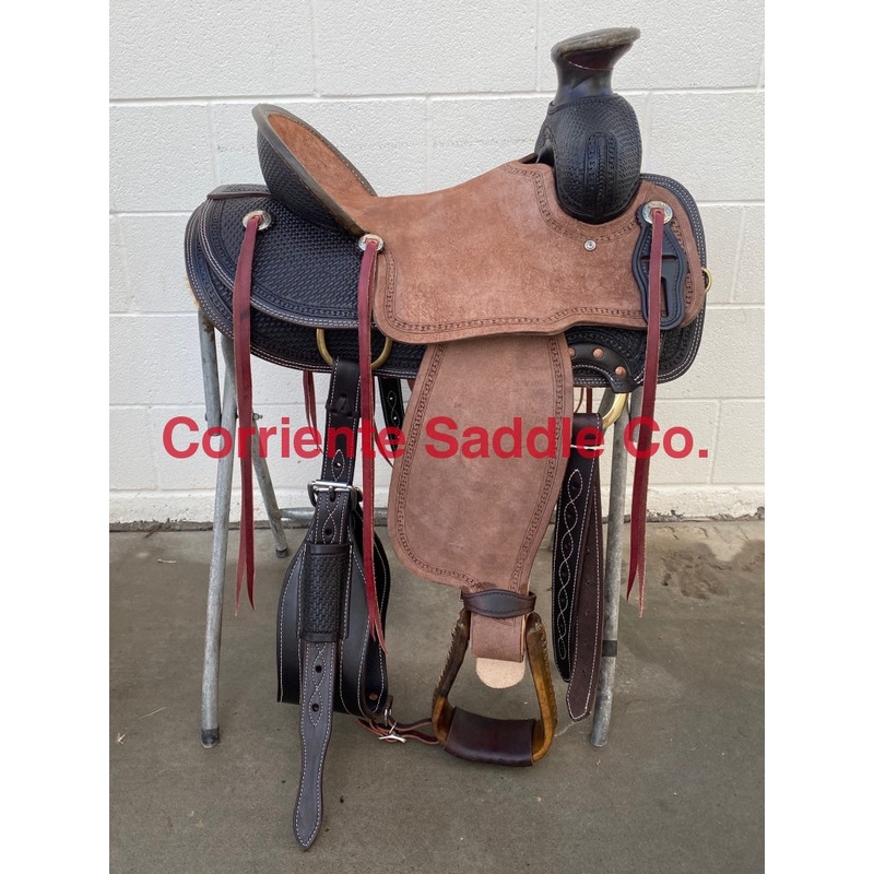 Real Wool Sheepskin LiningAvailable on All Saddle-$150Association Ranch Saddle**CHOCOLATE LEATHER**Guadalajara Wade HornHorn Measures 4.75″ across horn cap : 3.5″ inches tallHalf Breed RoughoutBasket Tooling