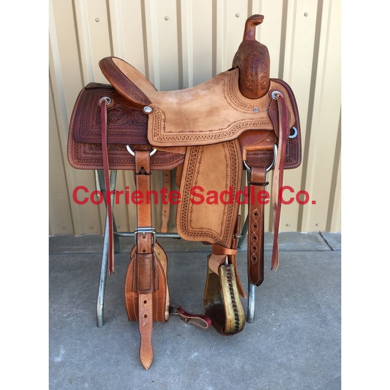 Square SkirtsRawhide StirrupsSeat Can Be Changed To A Solid Color Suede Seat Of Your ChoiceFURTHER DETAILSThis saddle is built on a wooden rawhide covered tree and comes with a latigo, back flank, stirrups, back billets and offstrap. To order give us a call or email us and we will get started on one for you. We take Visa, Mastercard and Discover. We offer seat sizes 14″ inch, 14.5″ inch, 15″ inch, 15.5″ inch, 16″ inch, 16.5 inch, 17″ inch, and 18″ inch in this saddle. On any saddle, we can add your brand, custom lettering, upgraded conchos, upgraded stirrups, etc. Trophy lettering is available for $50 as well on any saddle. Seat can be changed to a solid color suede seat of your choice.
