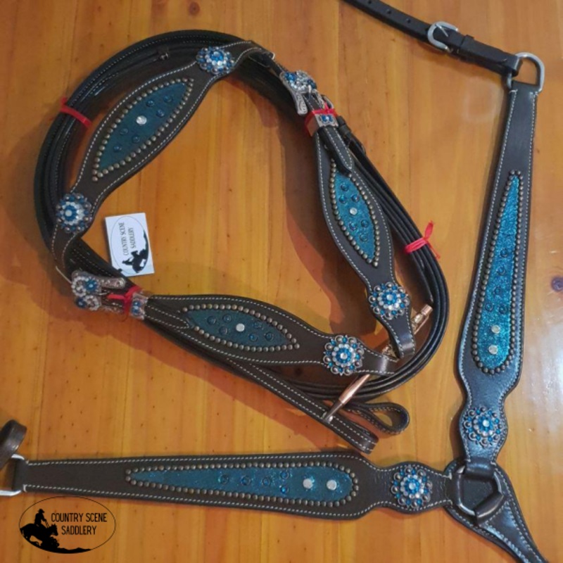 CSS stunning Bling Inlay breastcollar and headstall sets Blue