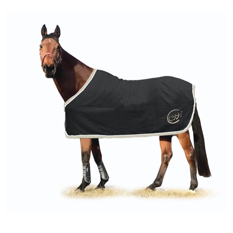 Choice of logo or text (Cimarron Show Stables -Times New Roman- tan)in light tan to match the trim. Name can be added to front left corner of blanket in light tan.