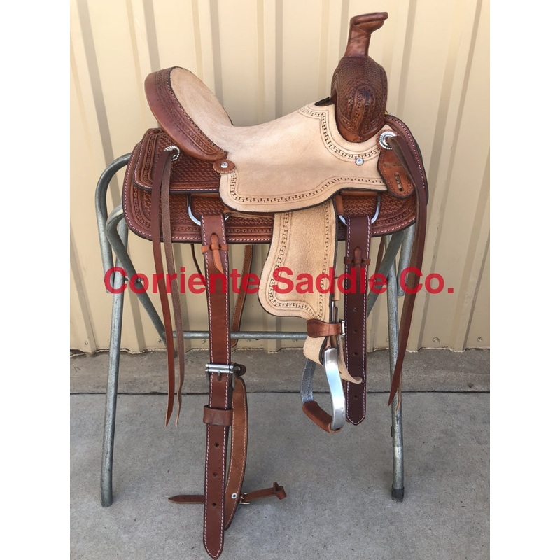 TO ORDER PLEASE CALL US 915-525-9009SADDLE SPECIFICATIONSReal Wool Sheepskin LiningAvailable -$12012" InchYouth Buckaroo Association Ranch SaddleHalf Breed RoughoutBasket Tooling Running W TrimAll Around SaddleCheyenne Roll4 StringsHard SeatFURTHER DETAILS