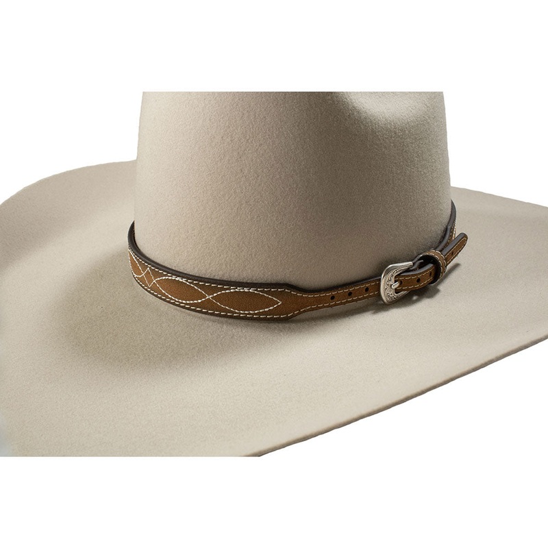 3D Roughout Boot Stitch Hatband in Brown3D HatbandEmbroidered Boot Stitch DesignScrolling Engraved BuckleFits Most Adult Hat SizesPU MaterialBrown