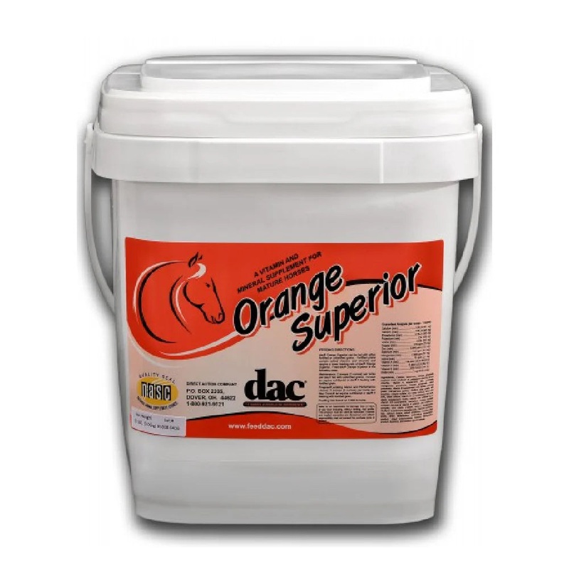 Orange Superior by dac is for use in mature horse’s diets where additional nutrients may be beneficial. Orange Superior is specially formulated to provide a balanced vitamin and mineral supplement for all horses. Minerals play a critical role in numerous metabolic functions, along with energy balance. Orange Superior is enhanced with Probiotics.