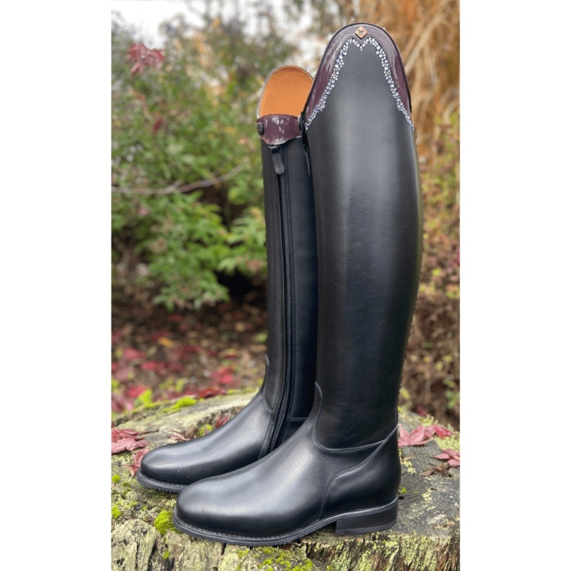 DeNiro Raffaello Dressage Boot – Black with Patent Prugna & Swarovski Rondine