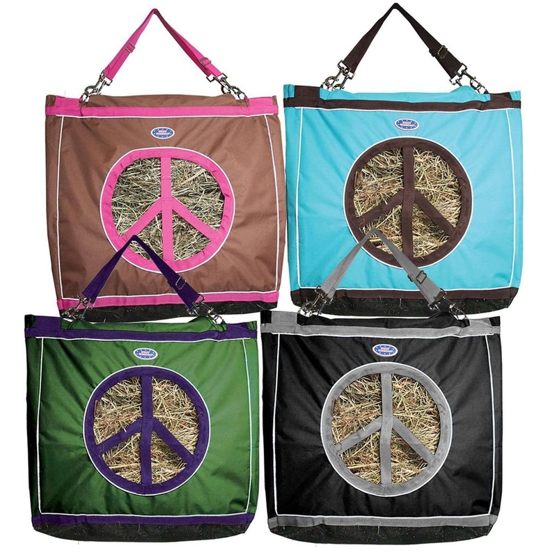 Derby Originals Top Load Peace Sign Hanging Horse Hay Bag with 13″ Diameter Opening and 6 Month Warranty
