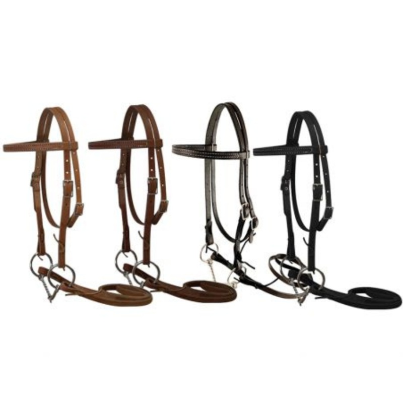 4 1/2" twisted wire O-ring snaffle bit. Reins measure 5/8" x 32". Made in theUSA.