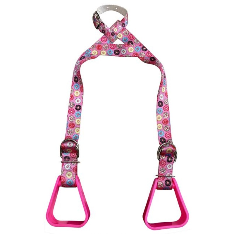 Heavy duty nylon adjustable buddy stirrups with a doughnut print. Buddy stirrups are made of heavy duty nylon and hard plastic stirrups. Stirrups are adjustable in length and around the horn.