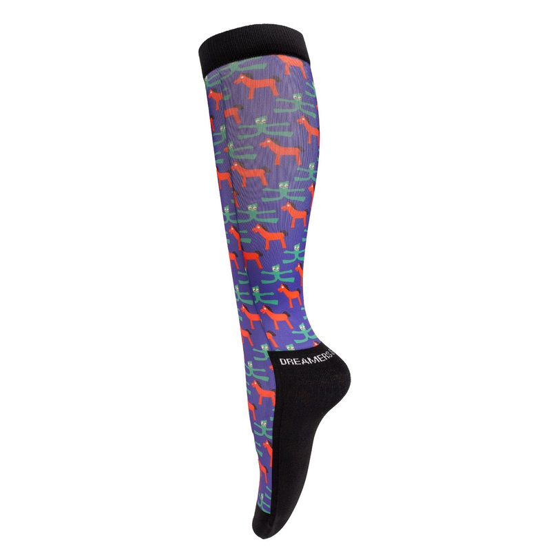 Perfect for schooling or at the show, Dreamers & Schemers boot socks are suitable for use under tall boots and feature a breathable construction with a thinly padded cotton terry footbed for all day comfort. The inclusion of a flat seam toe helps to eliminate rubbing and the padded footbed carries up the back of the sock to help protect your heel. Complete with a Gumby and Pokey design.