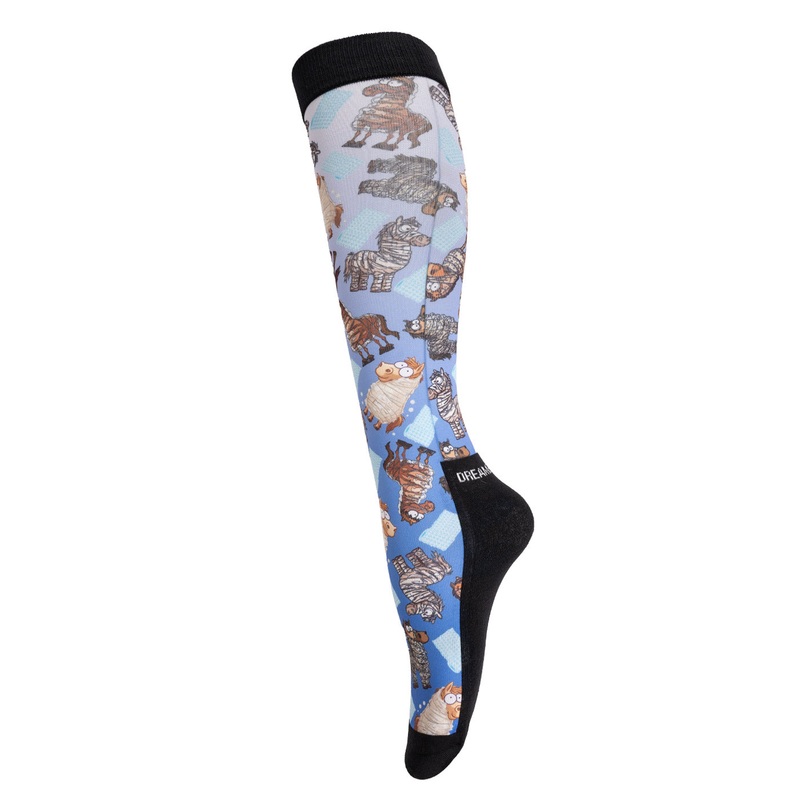 Perfect for schooling or at the show, Dreamers & Schemers boot socks are suitable for use under tall boots and feature a breathable construction with a thinly padded cotton terry footbed for all day comfort. The inclusion of a flat seam toe helps to eliminate rubbing and the padded footbed carries up the back of the sock to help protect your heel. Complete with a precious cargo design.