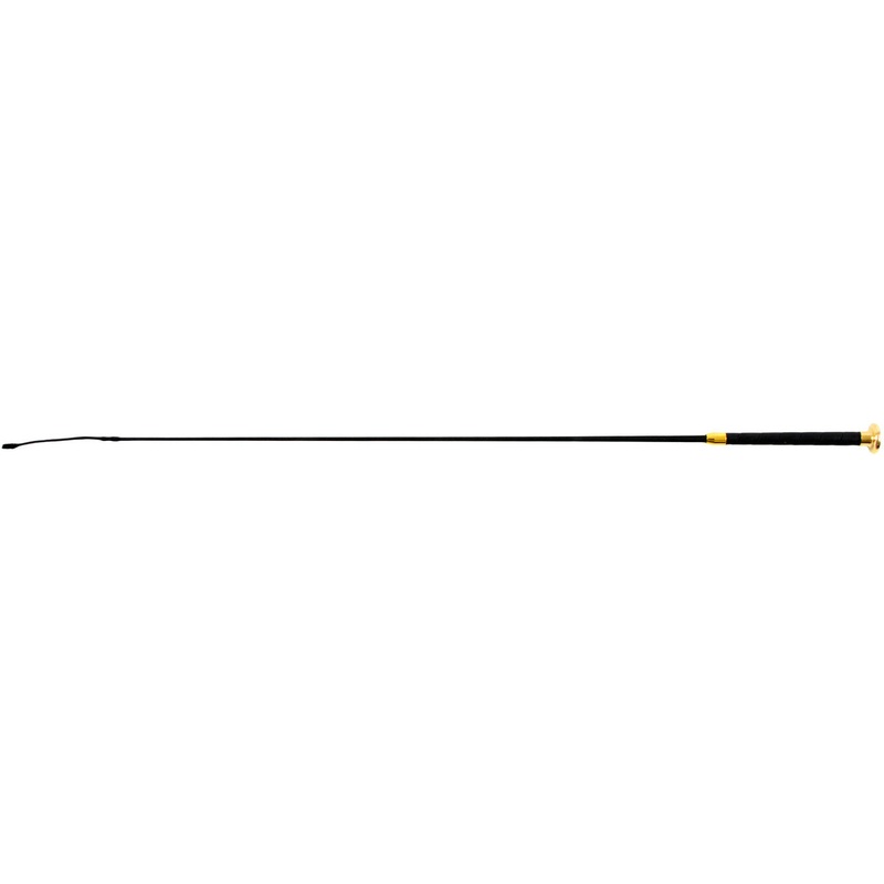 Features include a leather wrapped grip handle with brass mushroom cap, and nylon wrapped fiberglass shaft. Available only in black.