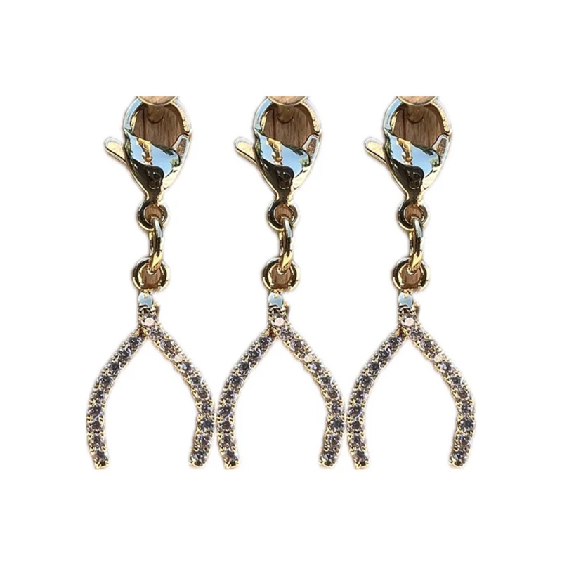 The perfect final touch of luck for your winning look! Beautiful gold lucky wishbone charm with pave crystals. It comes with one charm, not three, as the photo shows.