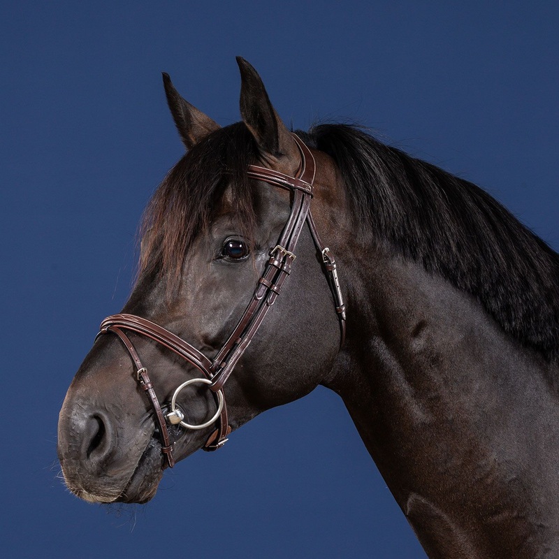 The noseband and cheekpieces are built into the headpiece, so the noseband fastens on both sides of the horse’s head for increased flexibility in fitting and fewer pressure points.