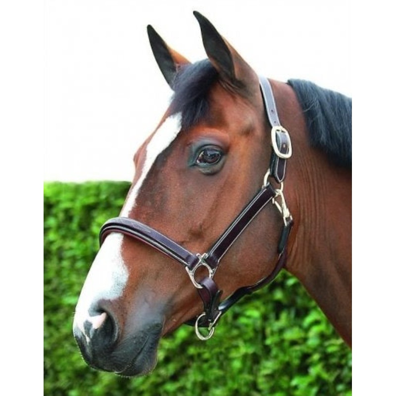 Leather HeadcollarPadded Headpiece adjustable on both sidesThroatlatch detachable on the left sidePadded, fancy stitched nosebandCream stitchingStainless steel fittings