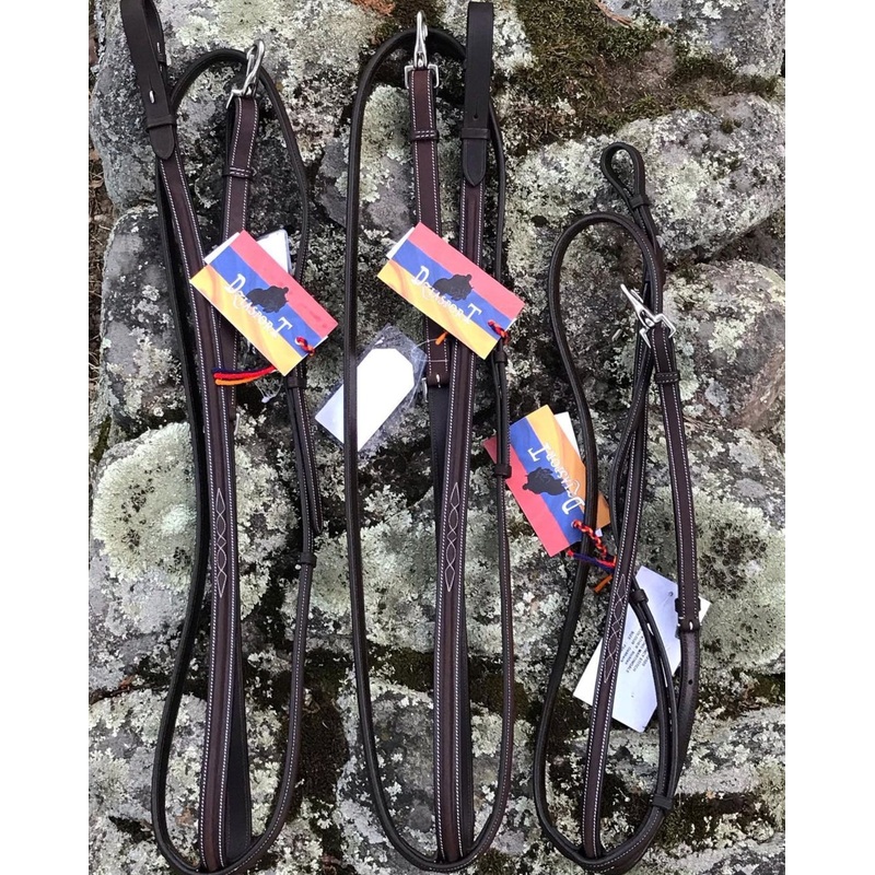 Tired of dismounting your horse every time you need a martingale change? The Easy-Off Standing Martingale by DziaSport makes martingale changes a breeze! The Easy-Off clips right to the D-ring on your girth and the noseband end can be unfastened to fit around even the widest and thickest crank nosebands. Grooms all over the showgrounds will be thrilled that the Easy-Off Martingale can be taken off or put on in as few as 15 seconds! Once you see how easy tack changes between jumping classes and the under saddle can be, you’ll never go back to a conventional standing martingale! Made of quality leather that wears well, with the fancy stitching we have come to love in the hunter ring. Available in brown, adjusts to fit horses 15-18hh.