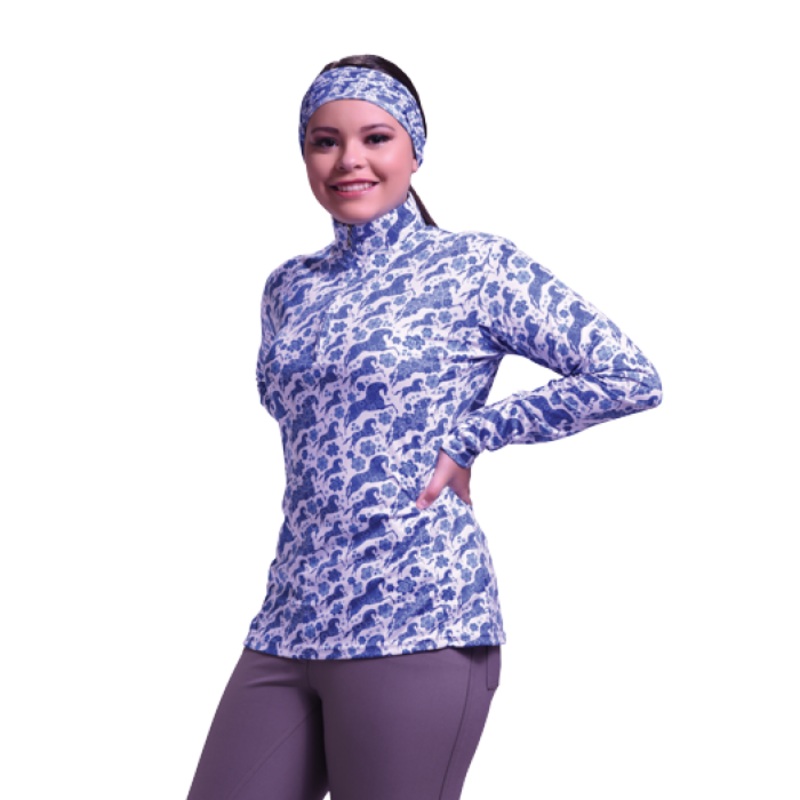 SF68493Ladies Sun Shirt in easy care Microfiber FabricShirt with matching lace in the front, back and under arm for airflow1/4 Zip Collar with stock tie holderMachine washable in Cold water and lay flat to dry