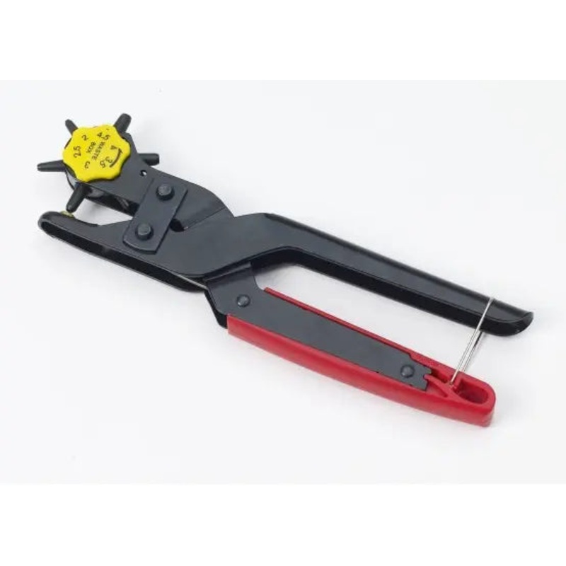 Heavy duty leather punch that is actually easy to squeeze and does the job in seconds (no huffing, puffing or cursing needed)! Includes 6 revolving tubes in a variety of sizes for all of your tack, barn, apparel needs.