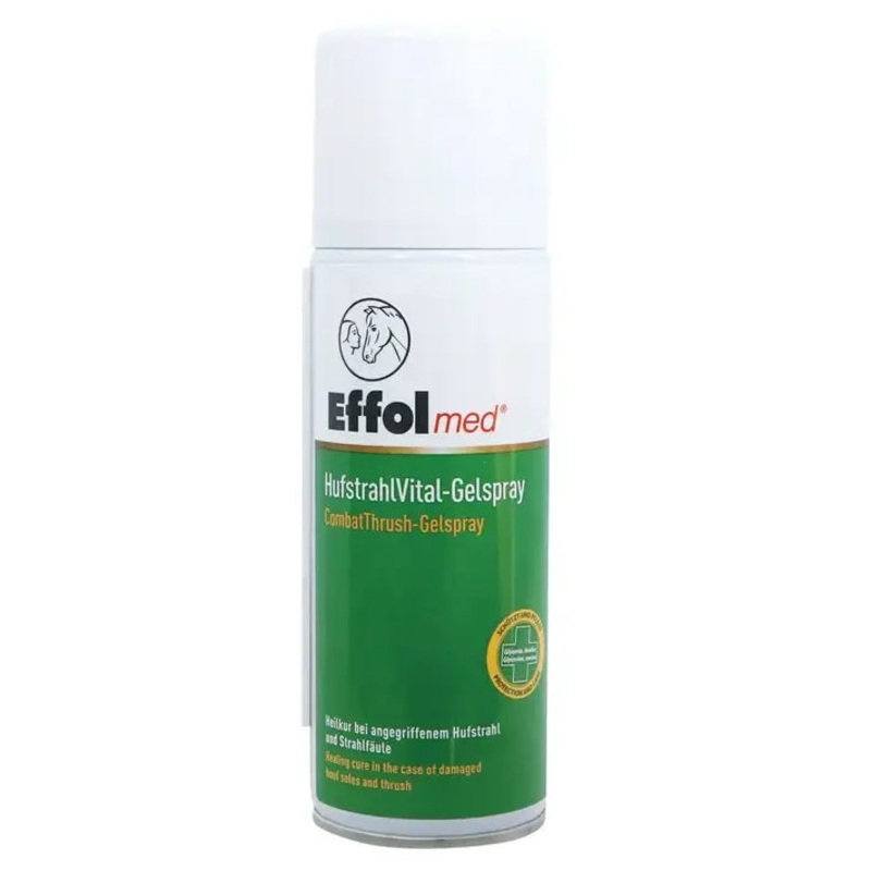 Effol Combat Thrush Spray dries out the frog and removes the breeding ground for bacteria and fungi in the hoof. It works to balance the moisture and works to prevent new cracks from forming. Allowing the hoof to recover. Effol med Combat thrush spray is ideal for all types of hooves, contains no formalin and is doping-free. The easy to use sprayer allows for exact treatment and no mess. Soundless to operate.