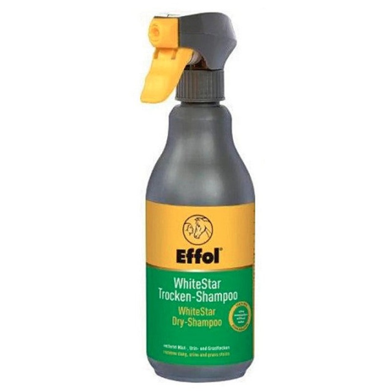 Spot remover for yellow dung stains and grass stains – Effol WhiteStar Dry-Shampoo is especially designed for cleaning greys and other light coloured horses and to highlight markings. If it is too cold for washing or if time is running you can easily use Effol WhiteStar Dry-Shampoo without water. It contains the natural haptic of the coat without getting slippy. Effol WhiteStar Dry-Shampoo is pH-neutral, without whiteners and without peroxide.