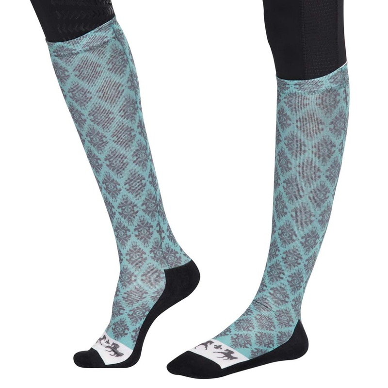 The Ladies Tara Technical Knee Hi Boot Socks from Equine Couture are made in stylish colors and designs and are both fashionable as well as comfortable. The Tara socks are crafted from a mixture of bamboo, cotton, nylon, and spandex for a soft feel and stretch for freedom of movement when worn underneath tall boots. The technical fabric is ideal for moisture management. Riders will love these attractive socks from Equine Couture.