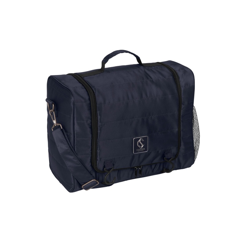 "MATTGLOSS"practical organizer to unfold and hang upfor daily use at stable and competitionhard-wearing, quilted mattgloss surfacetwo hangerslots of pockets and compartments for all a rider's belongingshandles and adjustable shoulder strapEskadron emblemhi