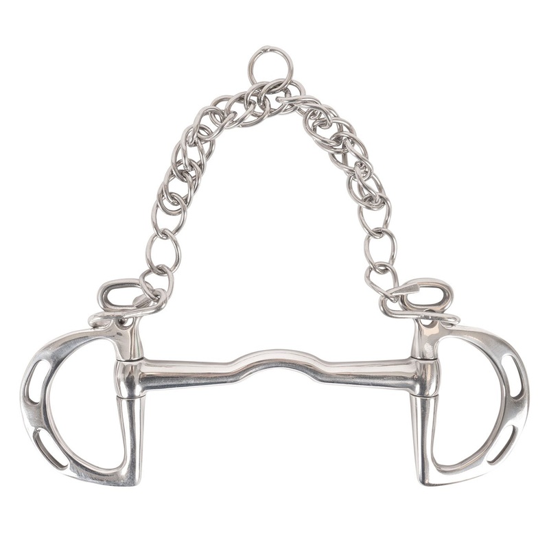 The EvoEq Uxeter Kimberwick Bit is designed to combine the effects of a snaffle and curb bit. Features a low ported mouthpiece to help provide tongue relief. Complete with d-shaped cheeks to apply pressure to the tongue, chin, or poll depending on rein placement.
