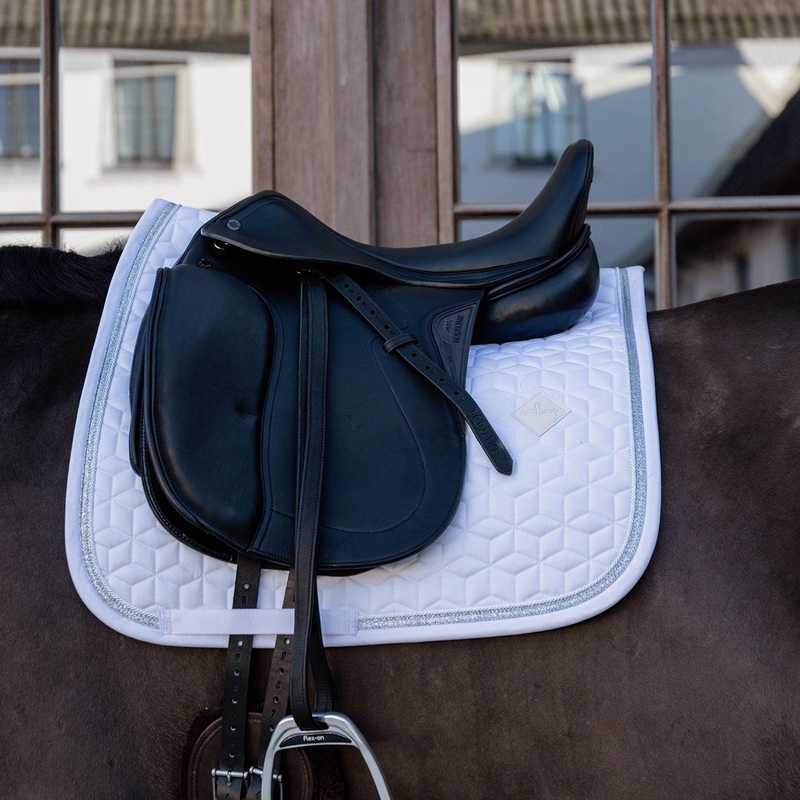 The Kentucky Glitter Rope Dressage Saddle Cloth is available in White/White. Full size only.