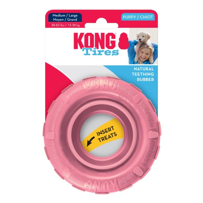 Building on the success of the popular tyres for adult dogs, this toy uses the exclusive puppy rubber formula specifically designed to ease teething gums. The stuffable inner track creates a mental challenge for puppies while teaching correct chewing habit