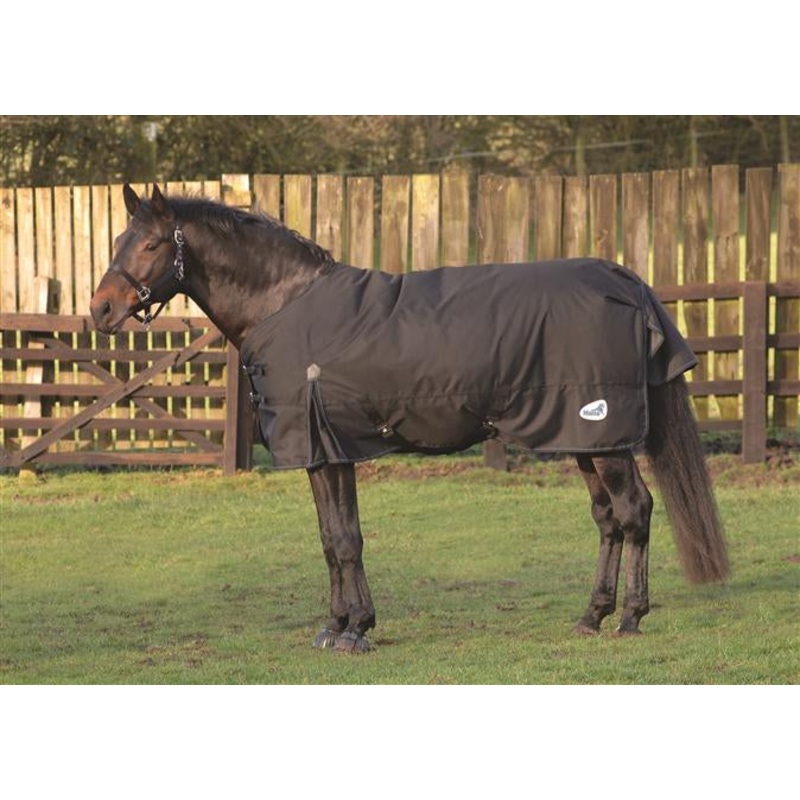 This Excellent Masta Zing Heavyweight turnout rug has a 300g thermal insulating filling. It is made from 600 denier ripstop, waterproof, breathable, polyester material. It features shoulder gussets, rear darts, self-righting pattern with no back seam. It also has twin adjustable front buckles with hook and loop fastening strip, rear leg straps and tail flap.