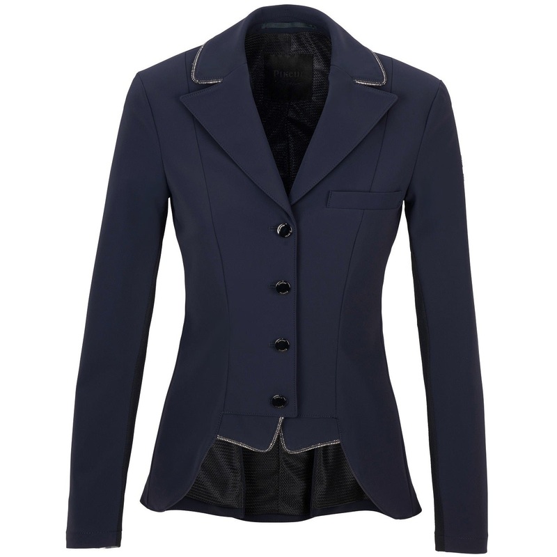 Super sophisticated show dressage coat. Breathable technology in fabric. Front section with dressage coat points. Back section in typical show jacket length.