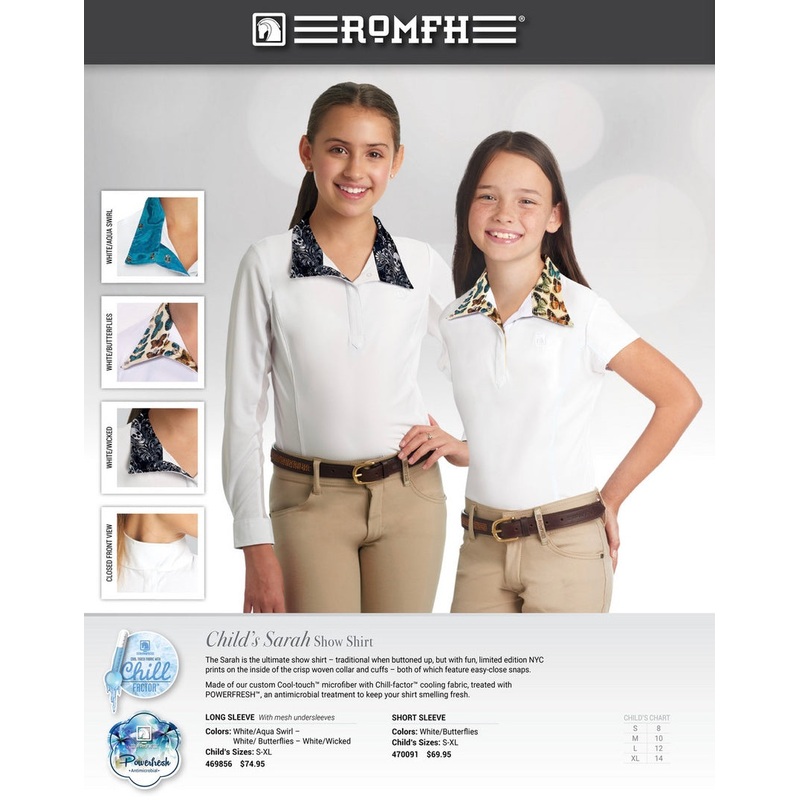 soft and cooling technical fabric perfect for the warm days in show ring.Color: white /butterflies or wicked