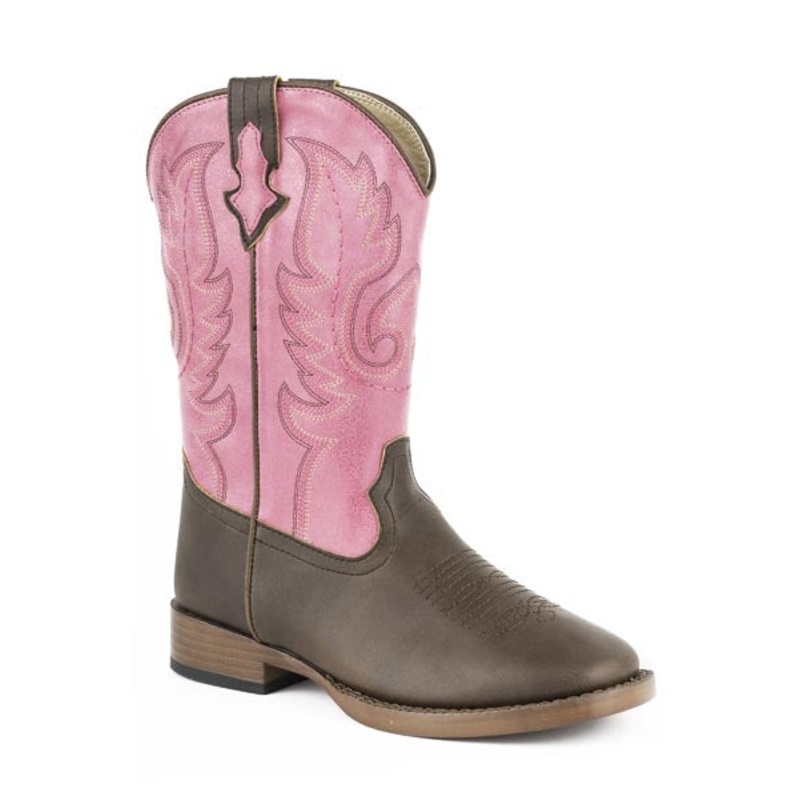 Roper Kids Texsis Square Toe Western BootsFeatures: Wide Square ToeQuality Faux Leather MaterialsFaux Leather BottomPadded Insole For Added ComfortWestern Stitch Design On ShaftBrown And Pink Upper