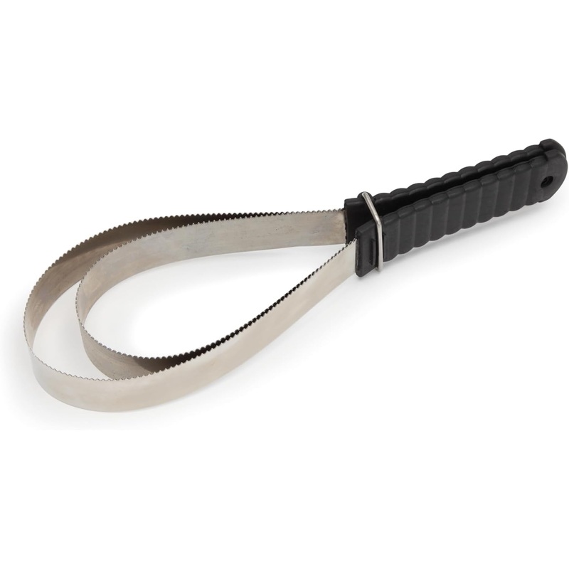 Designed to quickly and efficiently remove lose dead hair for your horse (or dog's) coat. The handle can be unhooked to form an open shedding blade. Great for those who prefer the double-handed approach Removes excess water from the horse's coat Helps remo