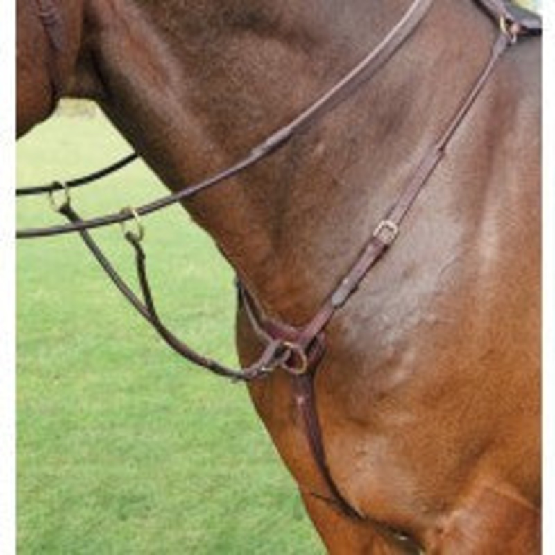 Salisbury quality leather three point breastplate with feature stitching detail to coordinate with the Salisbury leatherwork range. Complete with removable running martingale attachment and benefitting from being adjustable at the breast and padded at the wither. The shoulder straps also feature elastic inserts to allow some give.