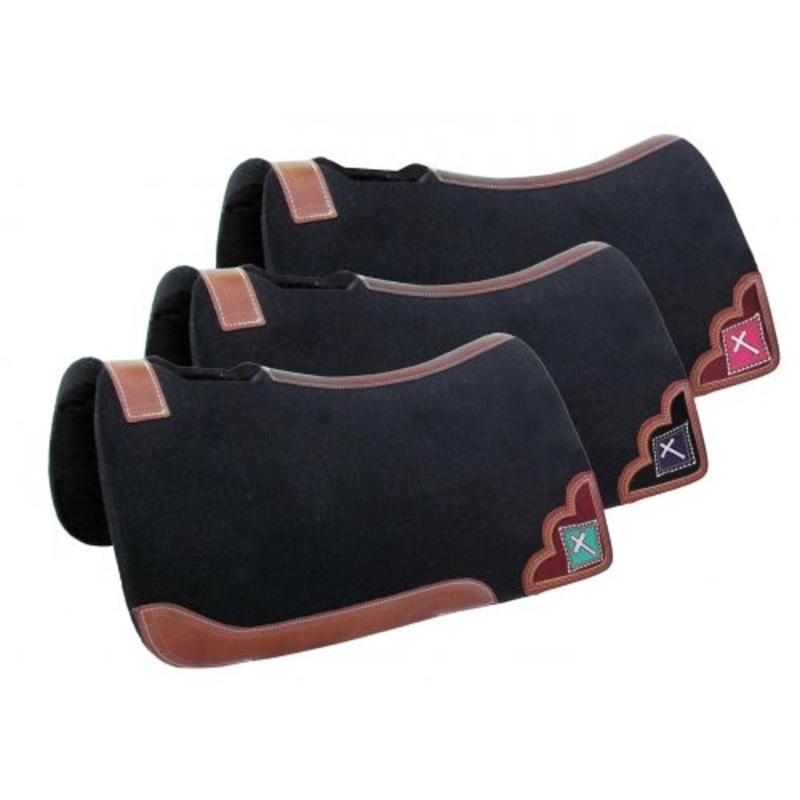 Showman32″ X 31″ x 1″ felt pad with beaded cross inlay.This pad features 1″ thick black, heavy duty blended felt with a vented wither and a leather reinforced spinethat is contoured to fit the horse.