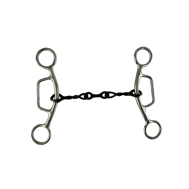Showman 5″ Stainless Steel Sweet Iron Mouth with Sliding Gag. This bit features a 6.5″ Cheek with a Twisted Chain and dogbone Center.
