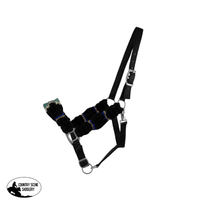 Showman Adjustable Mohair Wool Bronc Halter -Black/Teal/Blue