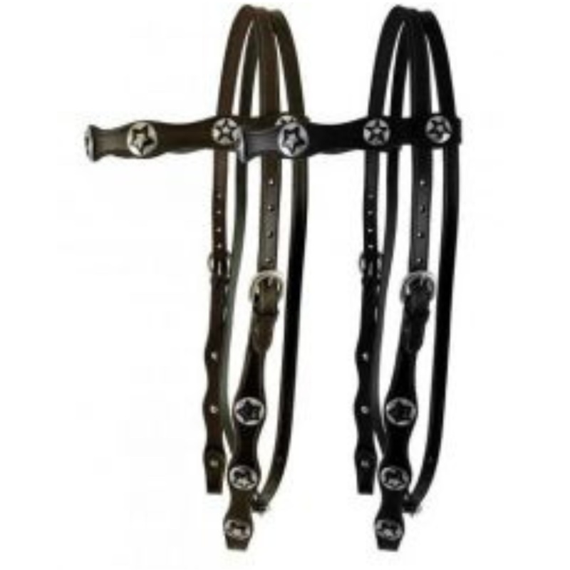 Cobb size Poco headstall with reins.Fully rounded browband headstall and rein set with solid ferrules. Show finish with hand rubbed edges.