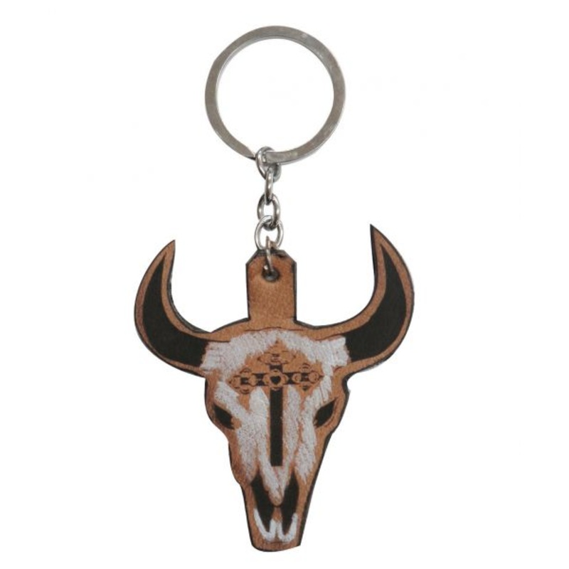 SF176486Showman 2.5" H x 2.5 W Cut-Out leather steer skull keychain.