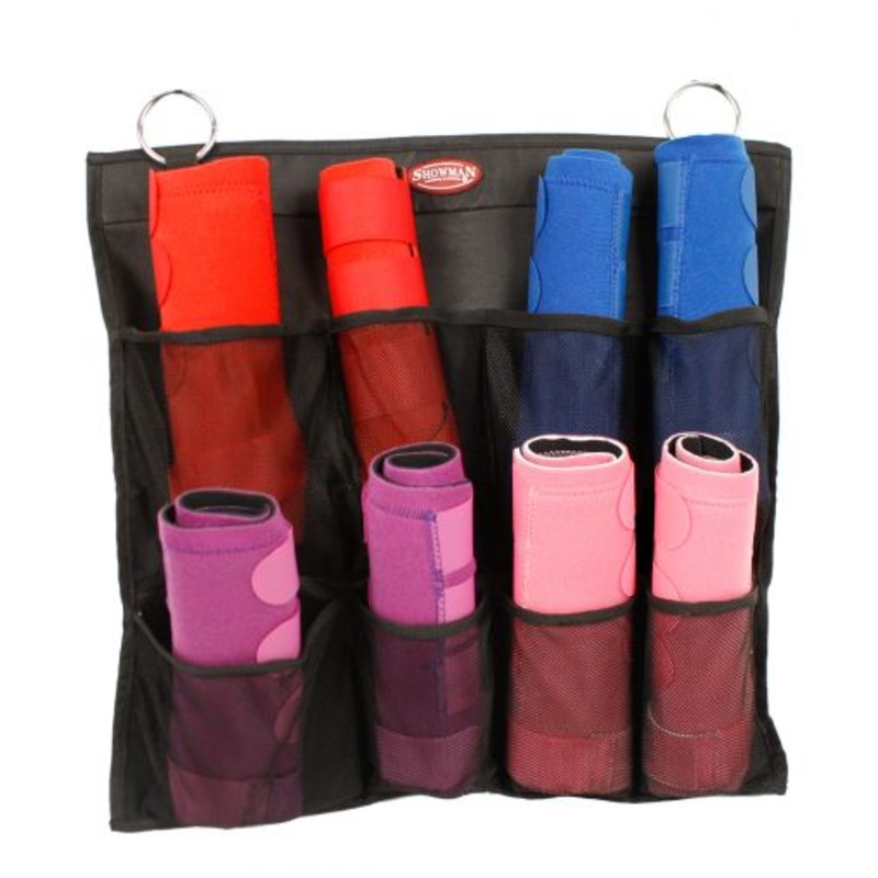 ShowmanNylon 8 pocket boot organizer. Made of heavy duty nylon with heavy duty rings for hanging. Great for horse boots and equipment. Mesh pockets provide visibility and air flow. Measures 21 x 21 and pockets measure 5 x 8 x 5. Boot not included.var TabbedPanels1=new Spry.Widget.TabbedPanels(TabbedPanels1);