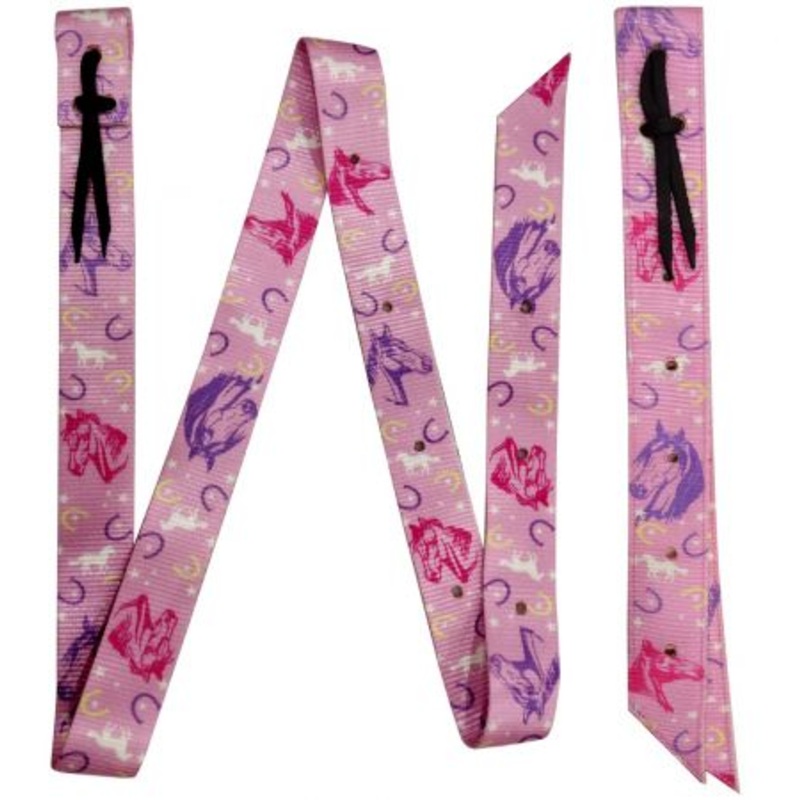 ShowmanPremium Quality Pink and Purple horse Print Nylon tie strap and Off Billet set. 2ply webbed nylon. Off billet has 6 pre-punched holes and measures 18 x 1.75. Tie strap measures 6′ x 1.75.var TabbedPanels1=new Spry.Widget.TabbedPanels(TabbedPanels1);