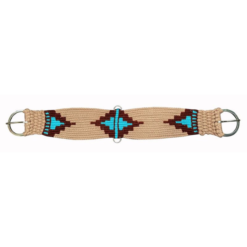 The Showman Tan Multi Strand String Girth with Aztec Designa must-have for any rider who loves a touch of flair with their function! This girth features a woven teal and dark brown Aztec design that adds a vibrant pop of color right where you need it. Its not just about standing out; this girth is crafted to be as stylish as it is practical, making every ride a little more special.Designed with two center D-rings, this girth is perfect for attaching training equipment, giving you added versatility in your training sessions. Whether you’re working on new skills or perfecting old ones, the D-rings provide the functionality you need while keeping your gear organized and within easy reach.Durability meets ease with stainless steel hardware thats both tough and dependable, ensuring this girth can handle the rigors of daily use. Plus, its easy-to-clean material means youll spend less time scrubbing and more time riding, making it the perfect choice for busy riders who want both style and convenience.From its eye-catching Aztec design to its practical features, the Showman Tan Multi Strand String Girth is all about enhancing your riding experience. It combines vibrant aesthetics with robust functionality, making every ride a little more colorful and a lot more enjoyable!Features a woven teal and dark brown Aztec design for a stylish pop of color.Soft, durable and breathable material.Includes two center D-rings for easy attachment of training equipment.Multiple sizes available to accommodate your horses size.Made with stainless steel hardware for toughness and reliable performance during daily use.Designed for simple maintenance, so you can spend more time riding and less time cleaning.var TabbedPanels1=new Spry.Widget.TabbedPanels(TabbedPanels1);